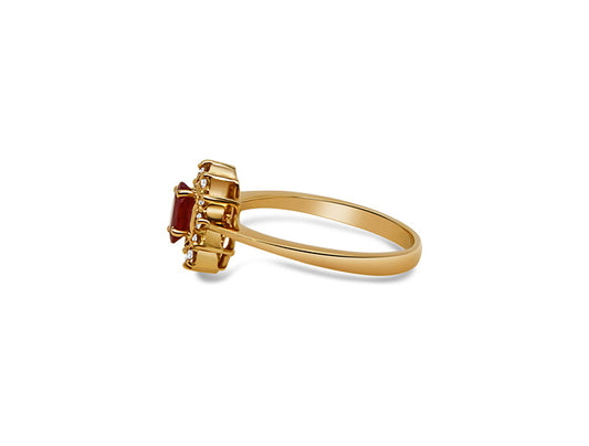 Ruby and Diamond Cluster Ring -18ct Yellow Gold