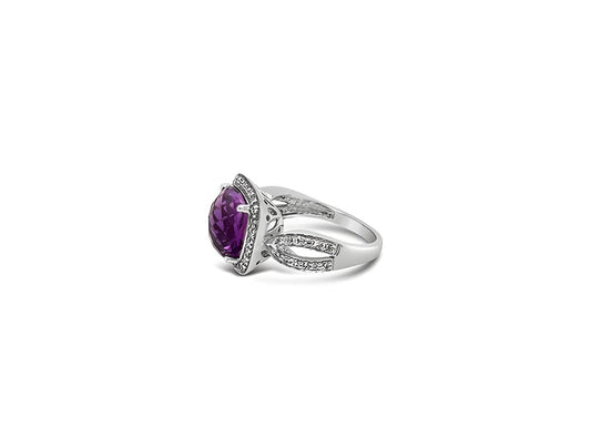 4.19ct Amethyst & 0.55ct Diamond Ring – 18ct White Gold