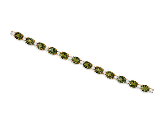 1.73ct Diamond & 13.39ct Green Tourmaline Tennis Bracelet in 18ct Yellow Gold