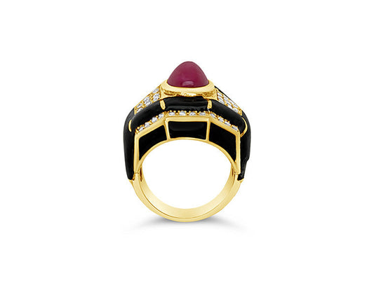 Joan Collins Ruby, Diamond & Enamel Ring – 18ct Yellow Gold